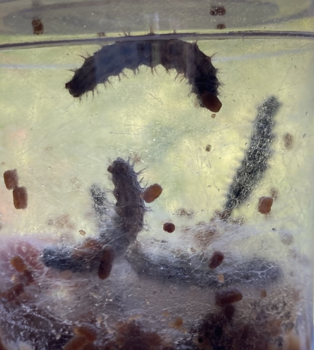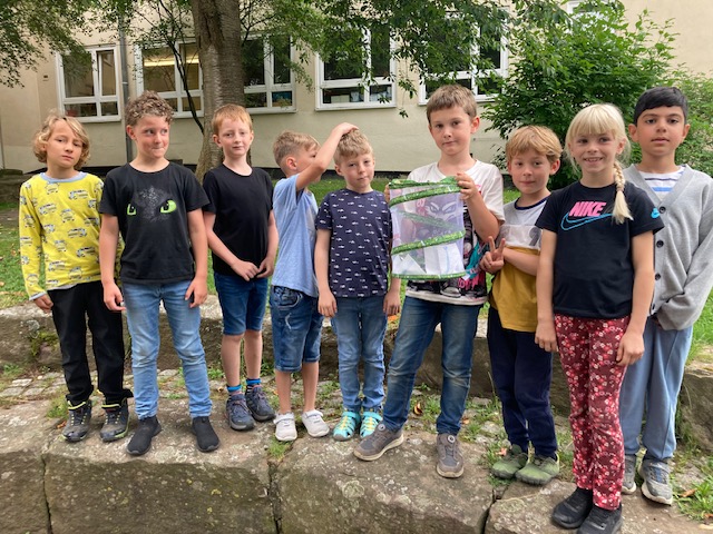 Im Rahmen der Unterrichtseinheit im Sachunterricht „Von der Raupe zum Schmetterling“ erwartete seit langem voller Spannung und Vorfreude die Kinder im Jahrgang 2 besondere Post: Im Juni war es endlich soweit - ein Paket traf ein, das schnell geöffnet werden musste und so zogen die noch sehr kleinen Raupen im Klassenzimmer ein. Auch wenn es schwer fiel, mussten die Aufzuchtbecher bis zum Verpuppungsstadium konstant geschlossen bleiben, um das Eindringen von Bakterien oder Schimmel zu verhindern. Streng verboten war auch, die Raupen auf die Hand zu nehmen, denn die Öle und Salze der Haut könnten für die Tiere schädlich sein. Ab sofort schlüpfte jedes Kind in eine Forscher-Rolle und beobachtete von nun an die kleinen Raupen. Fleißig wurde täglich Protokoll zum Larvenstadium geführt und besonders nach einem Wochenende war doch gut zu erkennen, dass „Die kleinen Raupen Nimmersatt“ immer größer, dicker und runder wurden. Etwa 7-11 Tage dauerte das Larvenstudium unserer Raupen. In dieser Zeit fingen die Raupen an Seidenfäden zu spinnen, was zunächst erst alle etwas beunruhigte. Aber: Kein Grund zur Sorge! In der wilden Natur spinnen die Raupen ein Geflecht, um sich vor Fressfeinden zu verstecken und um sich vor Wind zu schützen. Der Zeitpunkt der Verpuppung rückte näher. So konnten die Kinder beobachten, wie die groß gewordenen Raupen zum Becherdeckel krochen, sich an das dort befindliche Vliestuch hingen und plötzlich wie ein „J“ aussahen. Die Raupen verpuppten sich. Für diesen Vorgang benötigten die Raupen besonders viel Ruhe. In der Arbeitswerkstatt zum Thema lernten wir, dass die Puppen erst nach etwa 2-3 Tagen vollständig verhärtet sind. Erst dann konnten die Puppen behutsam in die Aufzucht-Voliere umgesetzt werden. An manchen Puppen hing noch ein kleiner schwarzer Ball – sogenannte Reste der letzten Häutung. Es ist sehr wichtig, dass die Puppen vorsichtig mit einem Wattestäbchen von Spinnfäden und Kot befreit werden, damit sich die später schlüpfenden Schmetterlinge nicht darin verfangen und möglicherweise die Entwicklung der Flügel gestört wird und sie deformiert bleiben. Im Inneren der Puppe fand nun die Metamorphose zum Schmetterling statt.